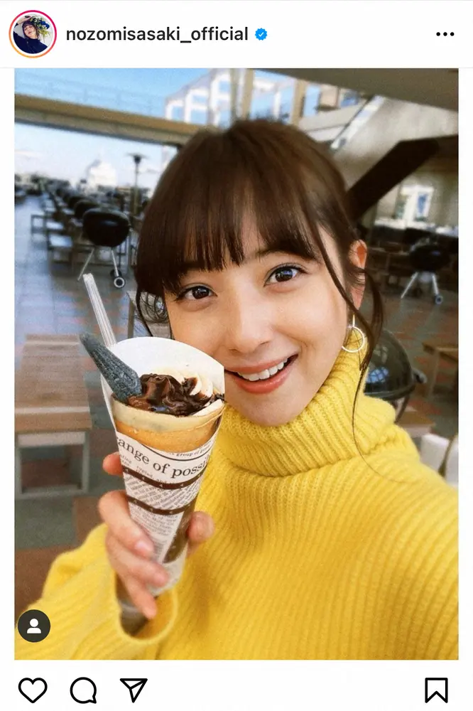 佐々木希 「甘い物がどんどん好きに…」クレープ持った笑顔ショットに「天使」「絵になる可愛さ」の声