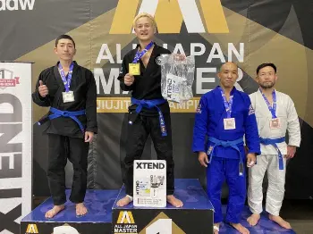 1試合5分の12人参加のトーナメントで4試合を戦い抜き相手にポイントを与えない“完封”勝利。高校時代は柔道部で1年半ほど前から週6回ペースで柔術の練習を開始。9月に米ラスベガスで行われる世界大会での優勝が目標。「胸張ってワールドマスターに行けますかね。キムラロック(腕がらみ)ではないですけど必殺技ヨシナリロックを考えたい」。同郷の熊本県出身で“柔道の鬼”と恐れられた木村政彦の必殺技も挙げながら夢の世界一に思いをはせていた。