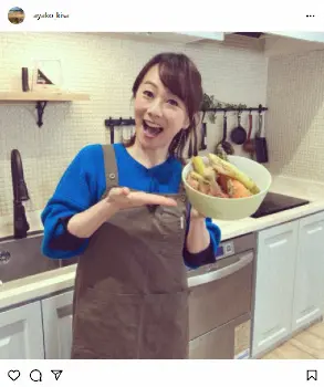 「私がペロモコ同様に毎日撫で撫でしてスキンシップを図っている“糠床ちゃん“」と愛犬のように扱っており「安藤優子さんに22年前に結婚のお祝いに頂いたのが私の糠漬け人生の始まりでした」と紹介した。「アメリカ転勤から戻り 今度は岸谷香ちゃんに分けて貰って大切に育ててまーす 我が家はお芋以外なら何でも漬けちゃってます!!」とぬか漬けを持つ自身の画像を投稿した。