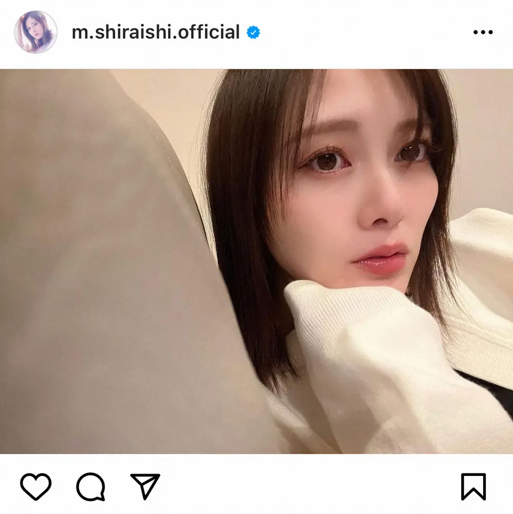 白石は「少し前に、短くなりました」と少し短くなった新ヘアの自撮りを披露した。