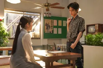 連続テレビ小説「カムカムエヴリバディ」第88話。条映・休憩所にて。五十嵐からあることを言われるひなた(川栄李奈)(C)NHK
