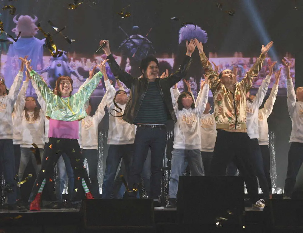 映画「SING/シング:ネクストステージ」の公開記念ライブイベントに登場した(左から)蔦谷好位置、「トレンディエンジェル」斎藤司、「スキマスイッチ」大橋卓弥、akane Photo by スポニチ スキマスイッチ大橋卓弥の生歌で、トレエン斎藤がダンス 「もう膝が曲が… ギャラリーで見る この記事のフォト 2022年03月10日の画像一覧 もっと見る 2022年03月10日の画像をもっと見る