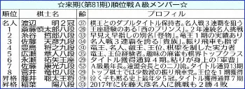 9日に東京の将棋会館で行われた第80期名人戦順位戦(毎日新聞社、朝日新聞社主催)B級1組最終13回戦で藤井聡太王将(19)=竜王、王位、叡王、棋聖含む5冠=が佐々木勇気七段(27)を下し、通算成績10勝2敗の1位で来期のA級初昇格を決めた。19歳7カ月でのA級入りは歴代2位の若さだった。
