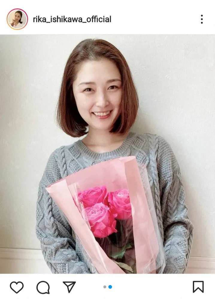石川は2017年3月13日に野上さんと結婚。18年4月に第1子男児、昨年1月に第2子男児を出産している。この日は「記念日 結婚記念日に出張中の主人からお花が届きました!」と記すと、ピンクの花束をアップ。2枚目には花束を持つ自身の最新ショットも投稿し、「毎年一本ずつ増やしてプレゼントしてくれますが、今年は会えないからお花も無いと。だからビックリしました!嬉しいサプライズ」とつづった。