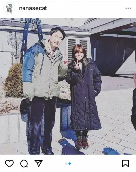 2人でアイススケートをする姿など、濱家との2ショット写真を2枚投稿し、「なんと!かまいたちの濱家くんと私は、小学校も中学校も同じ」と濱家と出身地が同じであると告白。2人とも大阪市東淀川区上新庄の出身で、「町内会まで同じです」とも明かした。