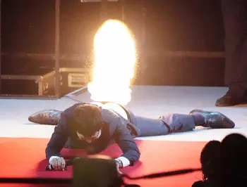 2019年2月のマッスル両国大会以来の「肛門爆破」に挑戦。「やるわけないだろ」と嫌がる中、レスラーにズボンを下ろされ、肛門に付けられた起爆装置が5カウント後に作動。しかし、音も鳴らず、火柱が地味に上がるだけの結果に会場は「シーン」。異例のやり直しとなり、25周年にちなんだ25倍の火薬量で作った起爆装置による爆破に挑み、大きな爆発音と同時に“昇天”した。