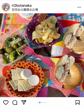 沖縄在住の田中は「最近は娘っ子が、私が東京にいるときは料理を作ってくれる」と23歳の長女と笑顔でピースするピクニック時の仲良しショットを公開。「ベーグルをお弁当にして公園にピクニック行ったり タコスや、ラザニアまで色々作ってくれるんだけど、どれも美味しいのだ そしてどれもカロリーが高い 美味しくて食べ過ぎちゃうのよね」と豪華な料理の写真をアップした。