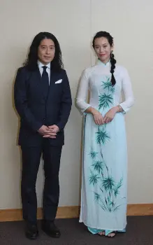 日本育ちのベトナム人女優フォンチー(31)とお笑いコンビ「ピース」の又吉直樹(41)が25日、東京・霞ヶ関の外務省を訪れ林芳正大臣を表敬訪問した。