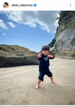 「先日の海で」と記すと、黒のトップス、ズボン姿の陽喜君が岩場をバックにした砂浜で歌舞伎のポーズをとるショットをアップ。ハッシュタグでは「いつでも歌舞伎」「陽喜」と添えた。