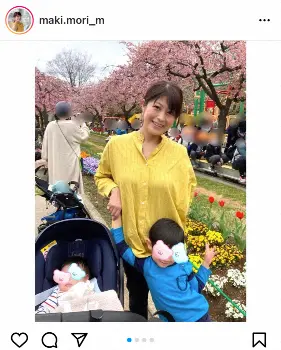 今年1月に第2子を出産したフリーアナウンサーの森麻季アナウンサー(40)が28日までに、自身のインスタグラムを更新。息子とのお花見ショットを披露した。