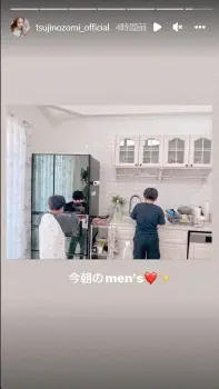 また、辻は引っ越したばかりのキッチンの様子も披露。「今朝のmen's」とつづり、白が基調のかわいらしいキッチンで息子たちが冷蔵庫を開けたりする様子を投稿した。
