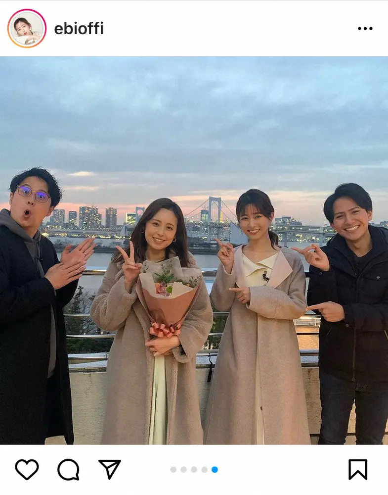 フジテレビ海老原優香アナウンサー公式インスタグラム(@ebioffi)より フジ海老原アナ 4月末退社の久慈暁子アナへの粋なサプライズ 同期そろい… ギャラリーで見る この記事のフォト 2022年03月31日の画像一覧 もっと見る 2022年03月31日の画像をもっと見る
