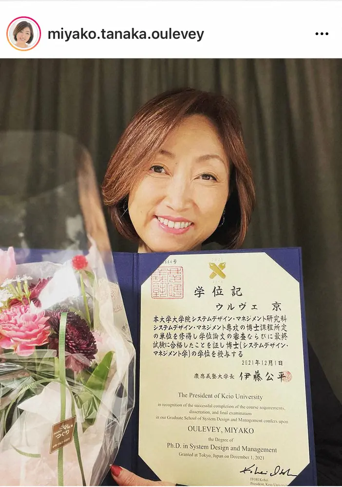 ソウル五輪シンクロナイズドスイミング銅メダリストでメンタルトレーナーの田中ウルヴェ京氏(55)が30日、自身のインスタグラムを更新。慶大大学院を卒業したことを報告した。