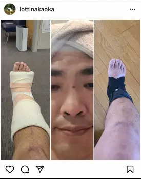 現在、治療中の中岡だが、この日の投稿で「脱ギプス中岡」と報告。「ギプスからサポーターに変わりました。風呂上がりの中岡を挟んでみました。どうぞ」と記し、ギブスの足とギブスを外した足の写真に自身の風呂あがり姿を挟んだショットをアップした。