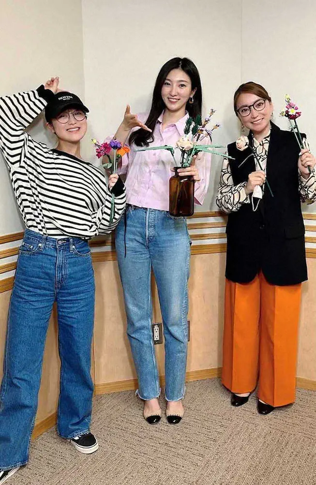 文化放送の新番組「カラフルブーケ」の初回放送を彩った左から鈴木奈々、福井セリナ、加藤綾菜