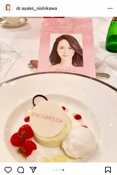 昨年8月17日に右脳内出血のため入院し、昨年12月16日に退院した医師でタレントの西川史子(51)が10日、自身のインスタグラムを更新。松田聖子(60)のディナーショーを訪れたことを明かした。