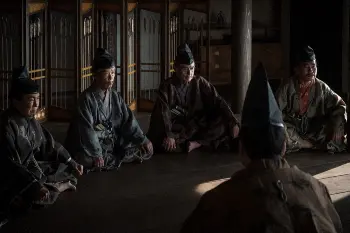 三浦館。坂東の重鎮・千葉常胤(岡本信人)たちが都ばかりに目を向ける頼朝の失脚を画策。反頼朝派には名だたる御家人、文覚(市川猿之助)も加わった。