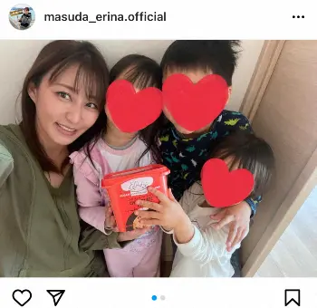 枡田アナは29歳の誕生日だった2014年12月25日に6歳下の広島・堂林翔太内野手と結婚し、2015年9月に長男、2017年9月に長女、2019年9月に次女を出産。家族5人で広島に居住している。