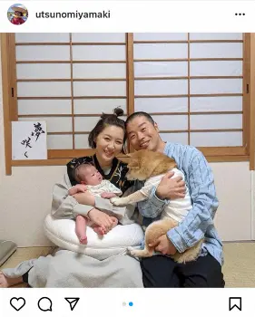 山名は「先日、我が家に家族が一人増えました」と書き出し「生まれるまでは年齢のこともあり二人で話し合い、周りの方にも妊娠のことをお伝えするのは控えさせていただきました。3700グラムの大きな男の子です。かっこいい父の背中をちらつかせ、柔らかい母のぬくもりを注入し、姉としてのおまめの厳しさを時には見せつけ、すくすくと育ってくれるよう一致団結し、大盛りあがりでやっていきたいと思います。これからも宜しくお願いします」と家族が増えた喜びと、父親になった自覚十分の宣言。お互い赤ちゃんを抱いた笑顔はじける宇都宮と愛犬との家族ショットを添えた。