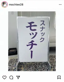 「家に看板。欲しいとは言ったものの、、どこに置きましょうか」と1枚の写真をアップ。自宅に、番組で長年やっていた冠コーナー「スナックモッチー」の看板が置かれている写真となっている。