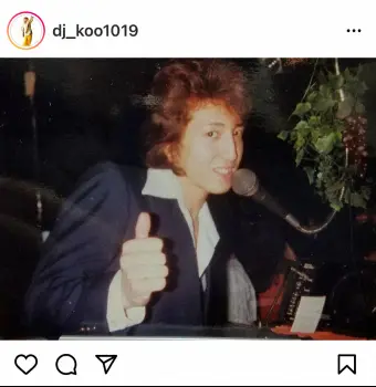 「Re:minder DJ KOO インタビュー掲載!!僕の音楽のルーツからDJデビューそしてTRF & ソロ活動まで!!音楽人生 DO DANCE!!」とPR。「写真は新宿 DISCO B&B時代 21才頃かなぁ」とサムズアップポーズで笑顔の若かりし頃の自身の写真をアップした。