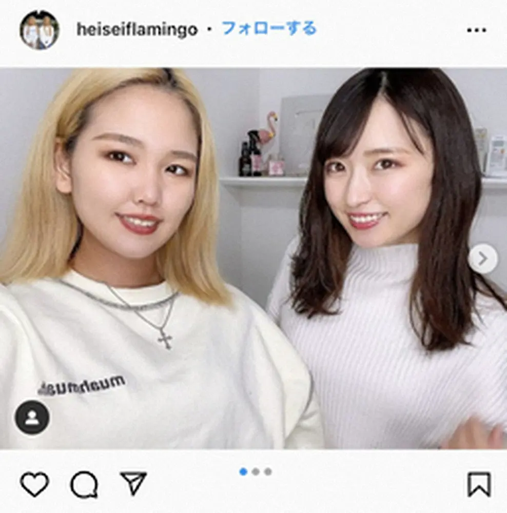 「平成フラミンゴ」りほ(上)とにこ。平成フラミンゴ公式インスタグラム(@heiseiflamingo)より 平成フラミンゴ・にこ「これからも息できないぐらい笑わせてやんぜ」誕生… ギャラリーで見る この記事のフォト 2022年04月13日の画像一覧 もっと見る 2022年04月13日の画像をもっと見る