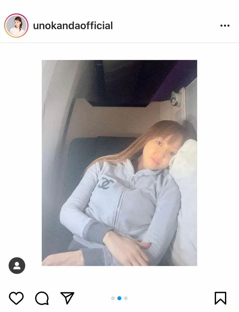 その後、無事に仕事を終え、帰国の途に。「機内でもエイジレスナイトブラを着けていましたよ」と帰国便の機内でのナイトブラショットを公開。「UNOの作ったナイトブラは夜はもちろんの事、日中も着けられます ナイトブラと共に快適な空の旅となりましたよ」と大満足の様子。「我ながらなかなか良い商品を開発したな(←自画自賛ごめんなさーい)と思っております ホント作って良かった~」とつづった。