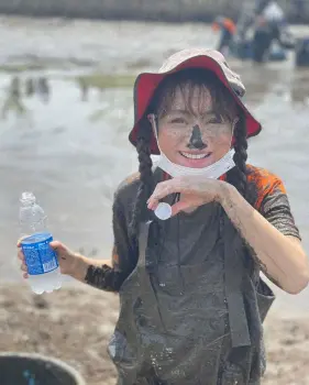 「昨日は泥だらけになりました 案の定今日は筋肉痛です」とつづり、オレンジ色のTシャツだけでなく、顔面も含めて全身泥まみれになった写真をアップした。