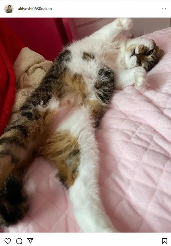 中尾は今年1月、「40代くらいの女子と添い寝をしてしまいました。」と爆睡する中尾の横に「おかか」が寄り添う画像をアップ。フォロワーからは「浮気現場」などとツッコまれるなど爆笑を誘っていた。
