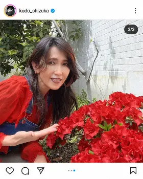 工藤静香 自宅のつつじと「ピッタリ」同色ブラウス&オーバーオール姿に「鮮やか~」「格好良い」の声