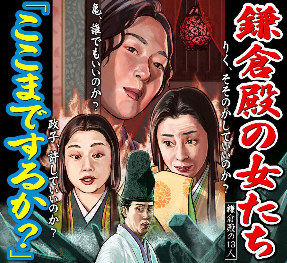 イラストレーターの石井道子氏が描いたNHK大河ドラマ「鎌倉殿の13人」第12話“大河絵”(鎌倉絵・殿絵)「鎌倉殿の女たち ここまでするか?」