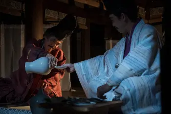 大河ドラマ「鎌倉殿の13人」第15話。酒を酌み交わす上総広常(佐藤浩市・右)と源頼朝(大泉洋)だったが…(C)NHK