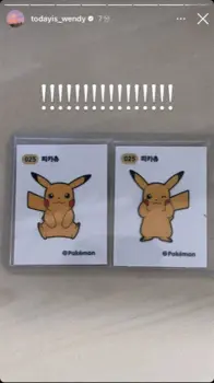 ウェンディはインスタグラムのストーリーで購入したポケモンパンをアップ。さらに「!!!!!!!!!」とコメントなしのびっくりマーク9連発で驚きを表現しながらピカチュウのシールを公開した。