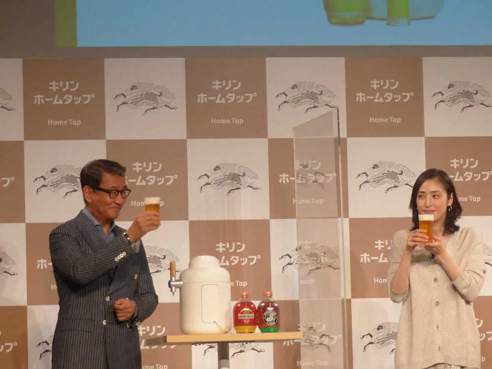 俳優の中井貴一(60)天海祐希(54)らが18日、都内でCM出演中の会員制生ビールサービス「キリン ホームタップ」の新ビール発表会に出席した。