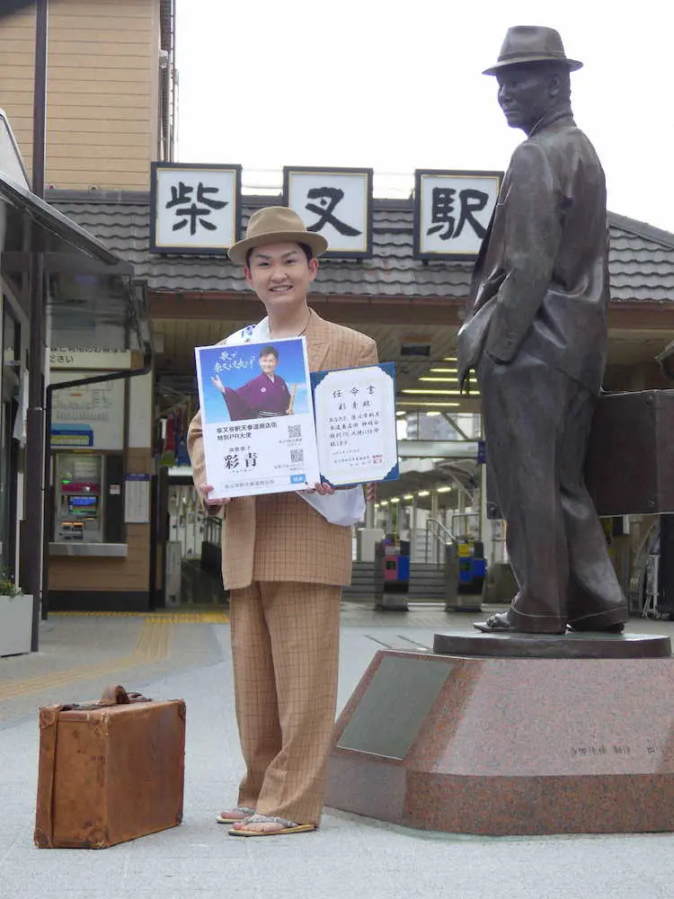 演歌歌手細川たかし(71)の弟子の彩青(りゅうせい、19)が18日、東京・柴又の柴又帝釈天参道商店街の特別PR大使に就任した。