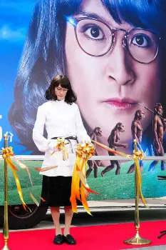 約7トンのトラックの側面に、約2・6メートルと巨大サイズのミタゾノの顔がドーンと描かれた。松岡は「もうちょっと小さいと思っていた」。トラックには、ドラマが進化するのを象徴する、猿からヒトへと人類の進化の様子も描かれている。