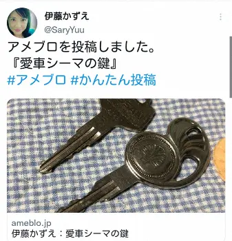 伊藤は初代のシーマに30年乗り続け、昨年には日産のグループ会社である株式会社オーテックジャパンでレストアを受けたが、カギについては「レストア終了して、他の新しい鍵が一つになったので、もうこの鍵は使えません」と説明。シーマのシンボル、アカンサスがかたどられた美しい鍵の写真を投稿。「今まで大した事故もなく走ってくれたので、お守りとして持っています」とつづった。