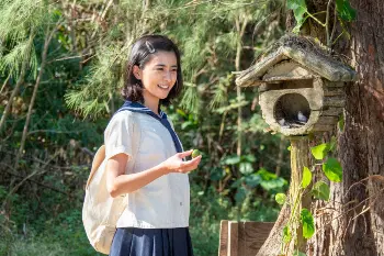 やんばるを去る史彦(戸次重幸)と和彦(田中奏生)が暢子を東京に連れていくことに。3人は名護行きのバスに乗った。