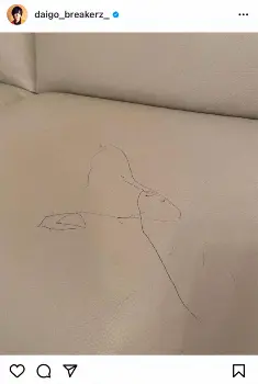 DAIGOは「1歳7ヶ月の画伯がソファーに 素晴らしいアート」とコメントし、落書きされたソファーの写真をアップ。「#アート #アーティスティック #ボールペンアート #センス #センスの塊 #画伯 #作品 #革ソファ #娘 #グーンプラスで育ってる」とハッシュタグを添え、微笑ましい様子をつづった。