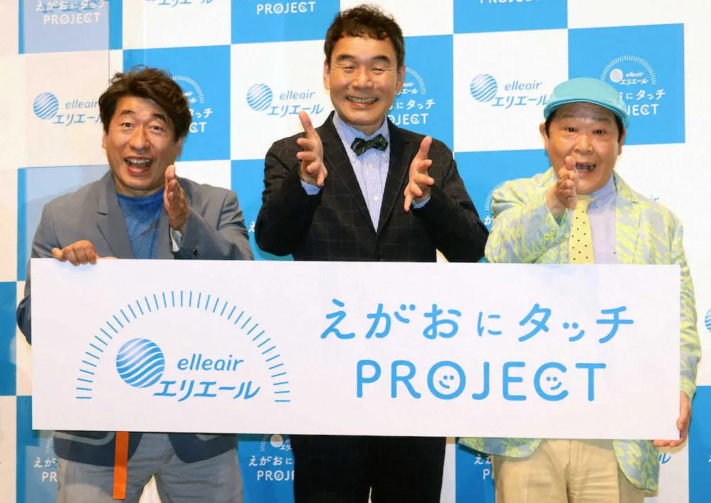 お笑いトリオ「ダチョウ倶楽部」が25日、都内でエリエール「えがおにタッチPROJECT」の記者発表会にゲスト出演した。