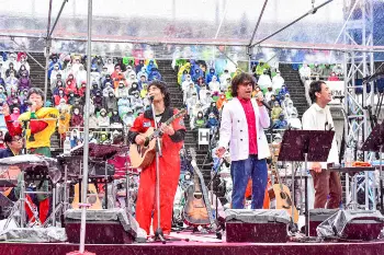ウルフルズのトータス松本(55)が29日、大阪・靱公園センターコートで開かれたFM COCOLOの音楽イベント「風のハミング」にゲスト出演。同イベントのホスト役であるスターダスト☆レビューの根本要(64)、KAN(59)、馬場俊英(55)らとセッションを繰り広げた。