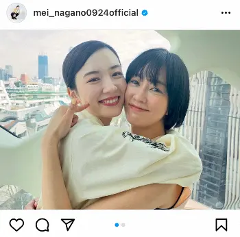「久しぶりに会えたお姉やん」とつづり、2枚のショットをアップ。1枚目には、嬉しそうに抱きつく永野の頬を水川が笑顔でつつくショット、2枚目には満面の笑みを浮かべる永野に対し、水川はクールな表情でカメラを見つめるショットを公開した。