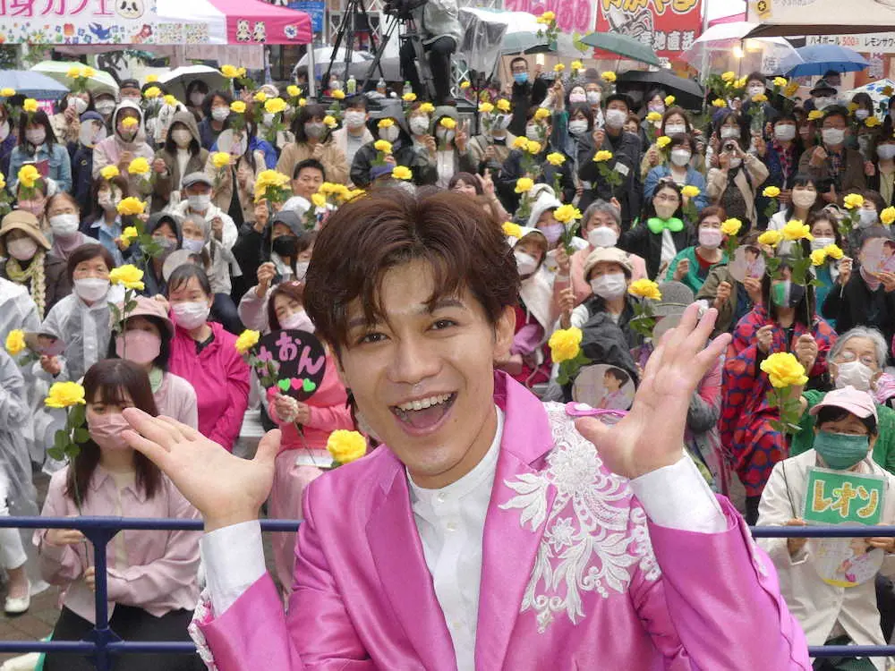 「演歌第7世代」の筆頭格と言われる若手歌手の新浜レオン(25)がデビュー日の1日、新曲「ジェラシー~運命にKissをしよう~」の発売記念イベントを東京・上野のおかちまちパンダ広場で行った。