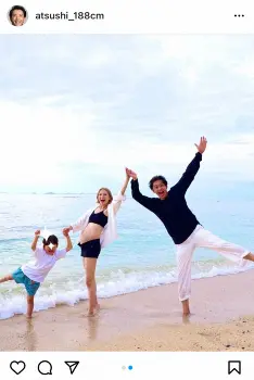 敦士、エモい! 5年前にマタニティフォト撮った場所で、長男と3人で訪れ幸せショット「次回は4人で」