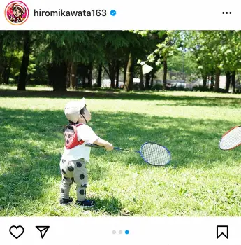 川田は「晴れると本当に気持ちいいですね!公園でバドミントンに挑戦」と投稿。続けて「息子はしっかり羽根を見ていました!上手くなってね!」と長男がバドミントンの羽根をじーっと見つめて打つのを待つ“瞬間”の写真を添えて我が子の成長を喜んだ。