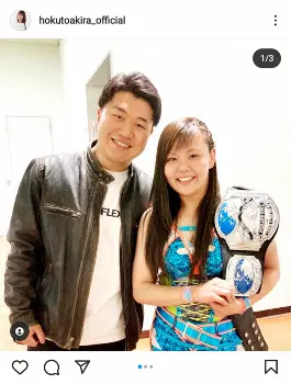 北斗は「改めまして長男の嫁を紹介させていただきます。長与千種さんのプロレス団体マーベラスプロレスリングの…門倉凛と申します」とつづり「まさかの嫁が女子プロレスラー 人生は何が起こるか分からないものですね~」と感慨深げ。さらに「よく見ると、若夫婦の顔がそっくりに見えるのは私だけでしょうか!?」ととつづった。