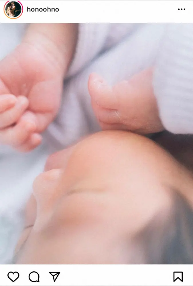 生まれたての赤ちゃんの画像とともに「先日、無事第一子を出産致しました」と報告。「母子ともにとても健康です!我が家に来てくれた新しい生命は、今までの人生で感じたことのない感情を沢山教えてくれて、日々様々なことに感動させてもらっています」とつづった。
