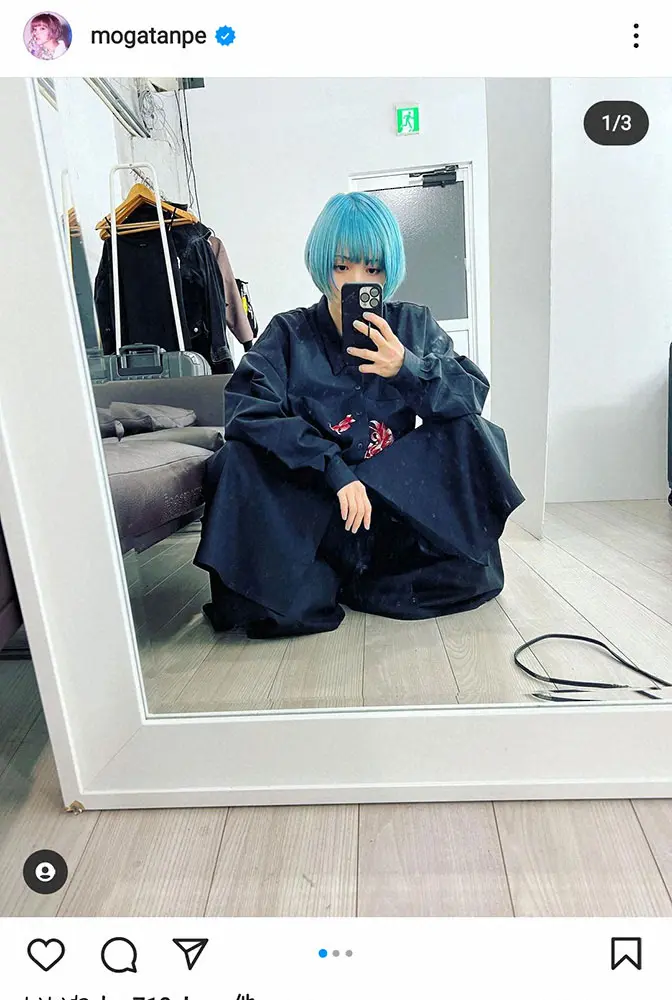 最上は人気アニメ「新世紀エヴァンゲリオン」に登場する綾波レイをイメージしたブルーの髪で“ヤンキー座り”をする写真を投稿。その後、同じようなポーズをする1歳長女の写真も披露し「髪の毛はいつの間にか娘の方が長い」とつづった。