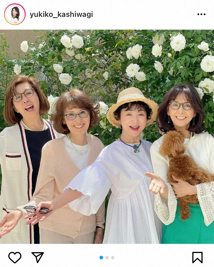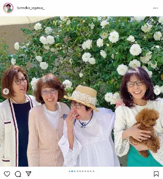 子役時代からの俳優仲間である女優の酒井和歌子や渡辺政江との4ショットを投稿し、小川は「毎年この時期 ユッコ邸のバラを愛でる子役会」と柏木の家に集まった様子。