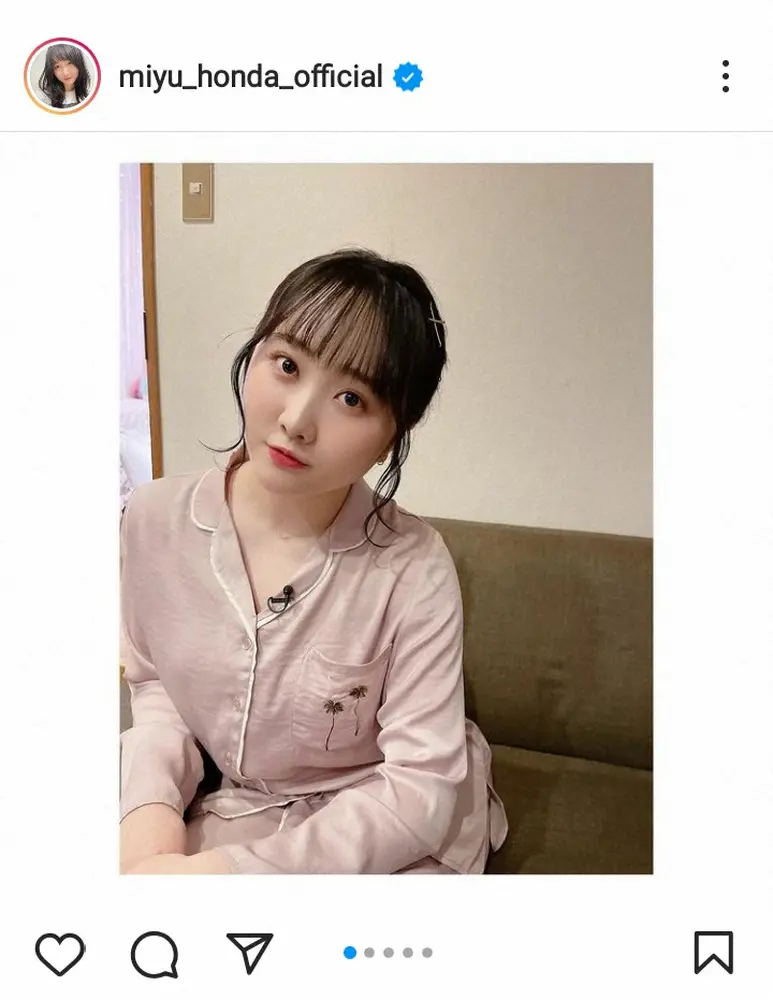 本田のキュートなパジャマ姿にフォロワーからは「めちゃくちゃ可愛い」「可愛いくて綺麗(きれい)過ぎます」「最近大人女性」「みゆちゃん、お疲れちゃん!!超ウルトラ美人だね!!」「最高」「魅力的~」「レアすぎる」といった反響が寄せられている。